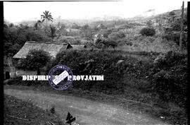 Rumah penduduk di daerah semeru selatan dekat dengan jalan nasional lumajang – dampit, 1956