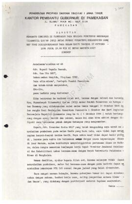 Sambutan pembantu Gubernur di Pamekasan pada upacara penutupan Musabaqoh Tilawati Qur'an ( MTQ ) antar pondok pesantren se Kab. Sumenep yang diselenggarakan pada tgl 17 Oktober 1986 di depan MAKODIM 0827, Sumenep