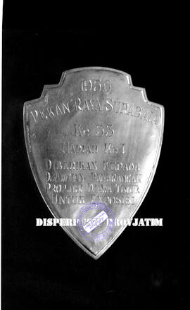 Sebuah plakat hadiah ke – I untuk Stand pameran milik Djawatan Penerangan pada Pekan Raya Surabaya ke – 33, 25 – 8 – 1956