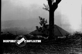 Sebuah rumah dengan latar belakang hutan dan bukit foto diambil ketika Peninjauan ke Giliketapang Probolinggo, - 3 – 1955