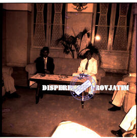 Semaun ketika berbincang – bincang dengan gubernur Samadikun di Surabaya, (lahir di desa Curah malang, Sumobito, Jombang, tahun 1899 dan wafat tahun 1971) adalah Ketua Umum Pertama Partai Komunis Indonesia (PKI) (wikipedia), 5 – 12 – 1956