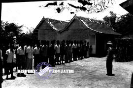 Seorang Brigadir polisi dari rombongan peninjauan sedang memberikan pengarahan kepada penduduk Giliketapang Probolinggo, - 3 – 1955