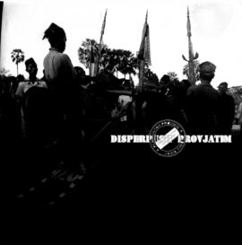 Item VI.56.1765 - Seorang joki bersiap-siap diatas sepasang sapi kerapan yang ikut dalam lomba kerapan sapi di madura, TT