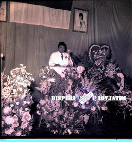 Seorang komisari Gerakan Mahasiswa Nasional Indonesia sedang berpidato pada kongres di Surabaya, 18 – 11 - 1954