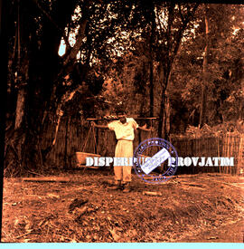 Seorang lelaki membawa keranjang dengan sebuah pikulan dari bambu di blambangan, 2 s.d 5 – 5 – 1956