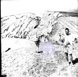 Seorang lelki tengah beristirahat dengan membawa hasil bumi diperkirakan untuk persiapan upacara Kasada, 24 – 6 – 1956