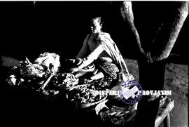 Seorang pedagang makanan sedang menunggui dagangannya di bromo pada Kasada, 24 – 6 – 1956