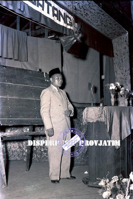 Seorang pejabat seang memberikan sambuatan pada Konferensi Persatuan Guru Agama di gedung Nasional Surabaya, 27 – 4 – 1954