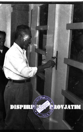 Seorang pejabat secara simbolis membuka  pintu kebun binatang sebagai awal  peresmian / pembukaan kebun binatang  Surabaya, 1 – 11 – 1957