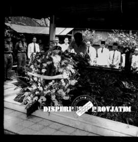 Item VI.59.2789 - Seorang pejabat sedang meletakkan karangan bunga pada peringatan Hari Kebangkitan Nasional, di Grahadi Surabaya, 20 – 5 – 1959