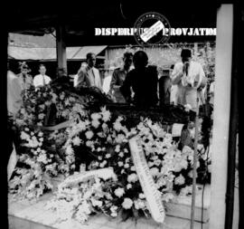 Seorang pejabat sedang meletakkan karangan bunga pada peringatan Hari Kebangkitan Nasional, di Grahadi Surabaya, 20 – 5 – 1959