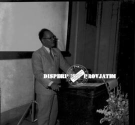 Seorang pejabat sedang memberikan ceramah pada acara Ceramah Pekan Kesejahteraan Keluarga (PWKJ), 24 – 10 – 1956