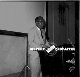 Seorang pejabat sedang memberikan ceramah pada acara Ceramah Pekan Kesejahteraan Keluarga (PWKJ), 24 – 10 – 1956