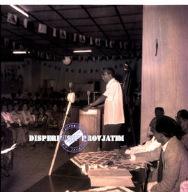 Seorang pejabat sedang memberikan ceramah pada acara ceramah PNI (Partai Nasional Indonesia) di tegalsari Surabaya, 29 – 1 – 1955