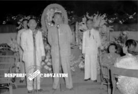 Seorang perwakilan / duta besar RRT sedang memberikan sambutan pada acaran ramah tamah dengan Duta Republik Rakyat Tiongkok (RRT) di Surabaya, 4 – 3 – 1955
