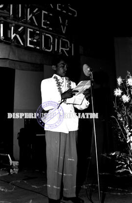 Seorang tokoh sedang memberikan sambutan pada Kongres Pelajar Islam Indonesia (PII) ke V di Kediri, 22 – 2 – 1954