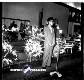 Seseorang sedang memberikan sambutan pada kongres pengusaha tembakau se indonesia di surabaya, 23 – 8 – 1957