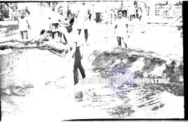 Seseorang tengah menebarkan jala disebuah kolam pada Peresmian Pembangunan Masyarakat Desadi Wlingi, 19 – 8 – 1957