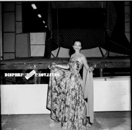 Sesi pemotretan seorang peragawati dalam batik show di surabaya, 16 – 12 – 1953