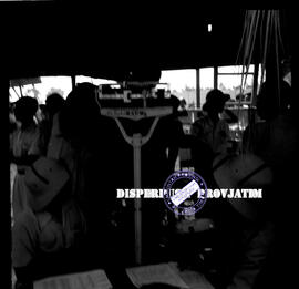 Sesi penimbangan berat badan pada lomba pacuan (patjuan) kuda di jombang (djombang) jawa timur, 26 – 8 – 1956