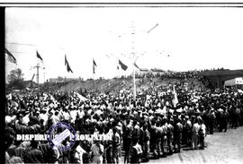 Item VI.64.3520 - Suasana apel besar / rapat raksasa sukarelawan Anti Malaysia / mengganyang Malaysia di depan kantor Gubernuran / lapangan Tugu Pahlawan Surabaya, 13 – 5 – 1964