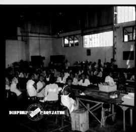 Suasana dalam pabrik Unilever (Pabrik komestik – Colibri NV) terlihat para karyawan perempuan terlihat sedang bersantai pada aksi pemogokan (kampanye pembebasan irian barat) di Surabaya, 2 – 12 – 1957