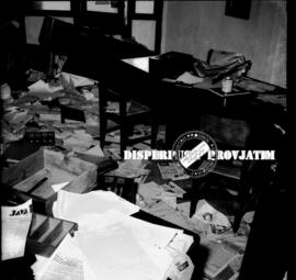Suasana dalam ruangan kantor koran Jawa Post / Chinese Daily News yang berantakan, di Surabaya, 31 – 1 – 1956