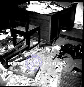 Suasana dalam ruangan kantor koran Jawa Post / Chinese Daily News yang berantakan, di Surabaya, 31 – 1 – 1956