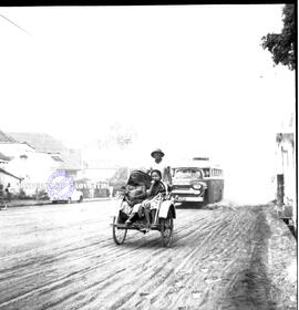 Item VI.63.3281 - Suasana depan kantor Gubernuran yang penuh dengan abu vulkanik akibat letusan Gunung Agung Bali (sesuai catatan sejarah letusan Gunung Agung tahun 1963 adalah yang terpanjang hampir 1 tahun), 17 s.d 20 – 3 – 1963