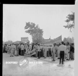 Item VI.63.3409 - Suasana jalannya demontrasi Anti Malaysia, dengan membawa berbagai macam sepanduk dengan tulisan seperti : “Jalan Terus Konfrontasi dengan Malaysia”, “ Ganyang Malaysia” dll. di Surabaya, 20 – 9 – 1963