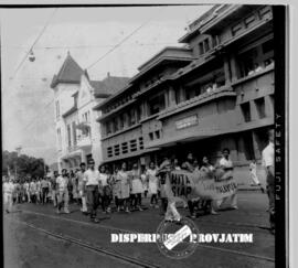 Suasana jalannya demontrasi Anti Malaysia, dengan membawa berbagai macam sepanduk di Surabaya, 20 – 9 – 1963