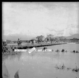 Item VI.55.1041 - Suasana kota situbondo ketika kebanjiran, terlihat banjir sudah menyentuh bibir sebuah jembatan, foto diambil pada pembukaan tempat pariwisata pantai pasir putih situbondo, 14 – 8 – 1955