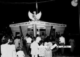 Suasana pameran, pengunjung pameran sedang mengunjungi stand pameran milik Djawatan Penerangan pada Pekan Raya Surabaya ke – 33, 25 – 8 – 1956