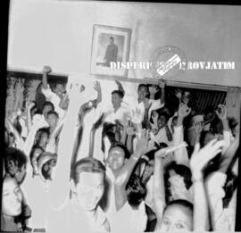 Suasana penurunan foto Ratu Wilhemina dan di ganti dengan foto Presiden Sukarno di kantor Rotary Club Surabaya, tahun 1957