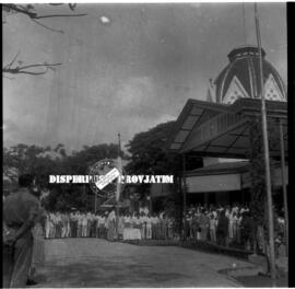 Suasana penyerahan Simpang SOS yang di selenggarakan di Balai Kota Surabaya, tahun 1957