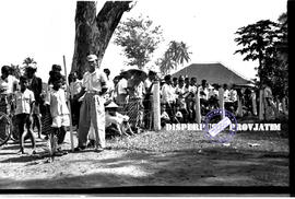 Suasana peresmian Pembangunan Masyarakat Desa (PMD) di Wlingi, masyarakat berkumpul untuk menghadiri acara peresmian, 19 – 8 – 1957