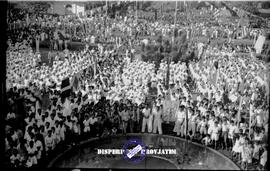 Suasana peringatan HUT Kemerdekaan RI ke 8 yang diikuti oleh pemuda, pelajar di surabaya, ternyata di depan gedung negara grahadi dahulu ada kolam air mancur bundar, 17 – 8 – 1953