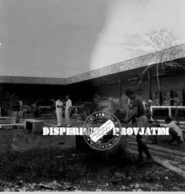 Suasana persiapan stand pameran pemerintah di CEFI (Center For Economical Fairs of Indonesia) Surabaya, tahun 1958