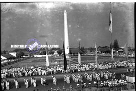 Suasana rapat raksasa dengan tuntutan untuk pembebasan Irian Barat yang diselenggarakan di tugu pahlawan Surabaya, 10 – 11 – 1957