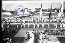 Suasana rapat raksasa menuntut pembebasan irian barat di depan kantor gubernuran Surabaya, foto diambil dari kantor gubernuran, 10 – 11 – 1957