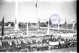 Suasana rapat raksasa menuntut pembebasan irian barat di depan kantor gubernuran Surabaya, foto diambil dari kantor gubernuran, 10 – 11 – 1957