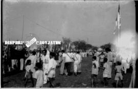 Suasana rapat raksasa (PNI, PKI, NU) di sebuah lapangan di Surabaya, 27 – 2 – 1955