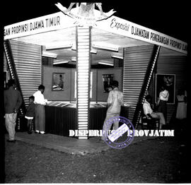 Suasana stand pameran milik Djawatan Penerangan pada malam hari pada Pekan Raya Surabaya ke – 33, 25 – 8 – 1956