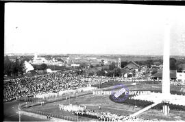 Suasana upacara Peringatan hari pahlawan di Surabaya, foto diambil dari gedung kantor gubernuran , 10 – 11 – 1953