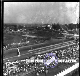 Item VI.54.0611 - Suasana upacara peringatan hari pahlawan di Tugu Pahlawan Surabaya, defile tampak membelakangi viaduct (sekarang rel kereta selatan bank indonesia) foto diambil dari 10 – 11- 1954