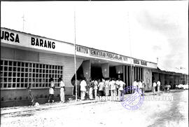 Suasana yang ramai terlihat di depan kantor panitia kementerian perdangangan pada bursa barang CEFI (Center For Economical Fairs of Indonesia) di Surabaya, 24 – 11 - 1958