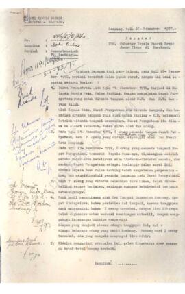 Surat Bupati KDH TK II Sampang kepada Gubernur KDH TK I Jatim tagl 28 januari 1972 tentang Demonstrasi di Pulau Kambing 1 berkas Tenbusan, baik