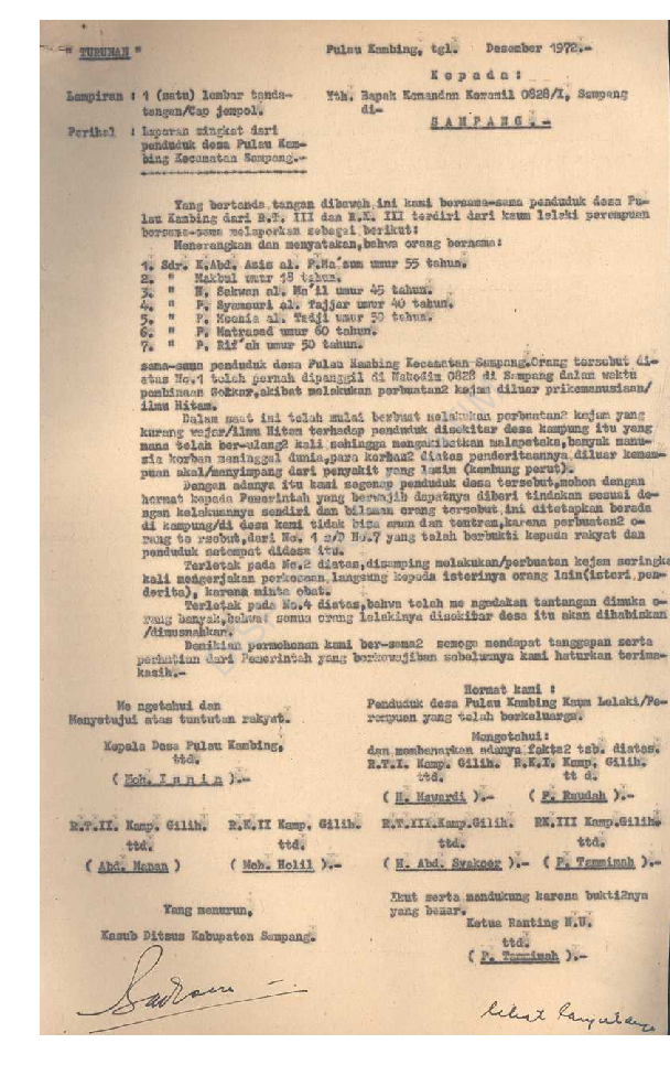 Surat Bupati KDH TK II Sampang kepada Gubernur KDH TK I Jatim tagl 28 januari 1972 tentang Demonstrasi di Pulau Kambing 1 berkas Tenbusan, baik (3)