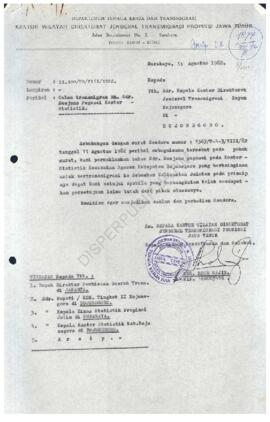 Surat dari Dirjen Transmigrasi Prop. Jatim kepada Direktorat Jenderal Transmigrasi Rayon Bojonegoro tentang calon transmigrasi an. Sdr. Soedjono Pegawai Kantor Statistik.