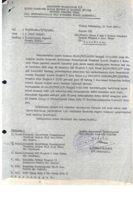 Surat dari Kantor Departemen Transmigrasi Kabupaten Dati II Tapanuli Selatan Propinsi Sumatera Utara kepada Kepala Dinas Pendidikan dan Kebudayaan Dati I Jawa Timur tentang PNS Pemberhentian pekerjaan dan perbantuannya an. Soelistyo Sudarko guru SD yang akan bertugas mengajar SD Inpres aliaga I Tapanuli Selatan.